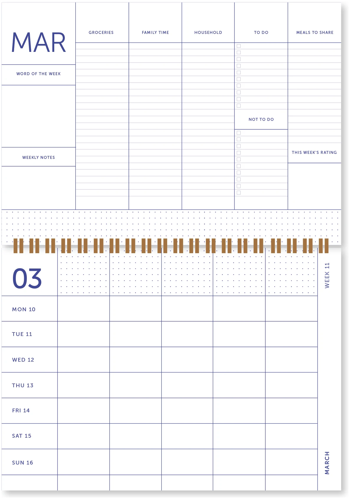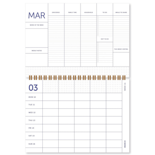 Zonder goede family planner kunnen we eigenlijk niet meer. Ons drukke bestaan vraagt om structuur. Dat geeft rust en houvast. Deze 18 maanden Family Planner van A-Journal heeft een overzichtelijk weekoverzicht en heel veel lijstjes om georganiseerd je familie (of studentenhuis) te runnen. Er is er ruimte voor to do’s, no to do’s, groceries, family time, weekly notes en natuurlijk: this weeks rating.