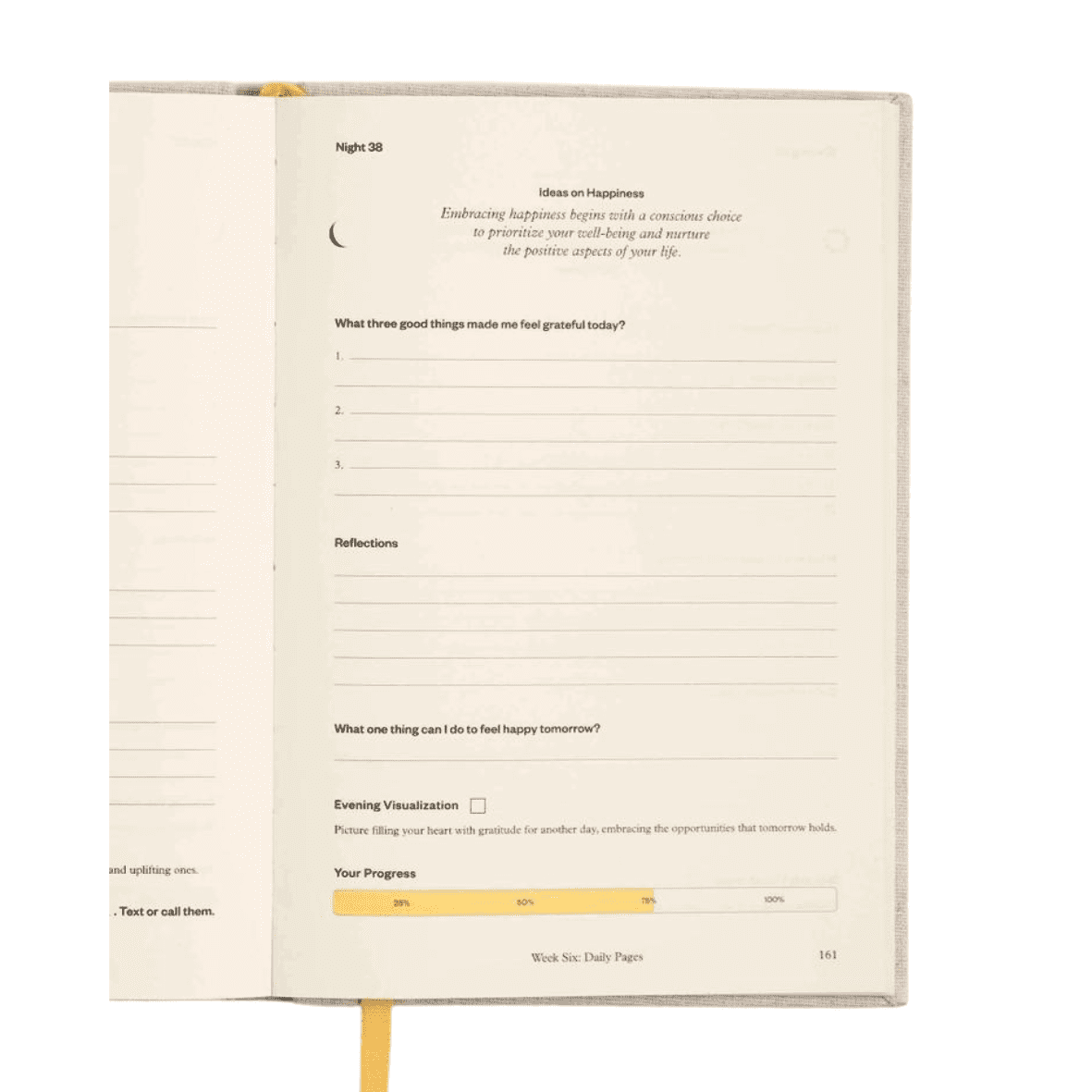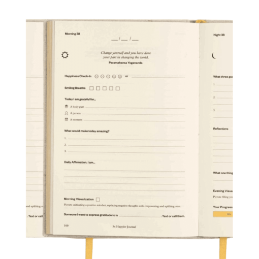 Het 3x Happier Journal van Intelligent Change helpt je om bewust na te denken over dankbaarheid, mentale welzijn te verbeteren en positieve gewoonten te ontwikkelen gedurende een periode van 60 dagen. Het bevat dagelijkse dankbaarheidsoefeningen, mindfulness-oefeningen, positieve affirmaties en visualisaties. Het dagboek geeft je een dagelijkse routine om jezelf vragen te stellen en over waardevolle zaken in het leven na te denken.