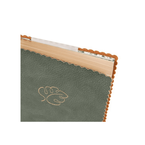 Het Artebene notitieboek Moss is een prachtig notitieboek met een soepele kaft van smooth vegan leather, met in goudfolie een subtiel blaadje. Dit hoogwaardige en elegante notitieboek is de plek voor het maken van aantekeningen en ontwikkelen van ideeën. De 240 dotted pagina’s hebben een offwhite kleur en zijn van een hoge kwaliteit papierdikte waardoor teksten of creaties niet doorschijnen. De 2 lintjes, de gekleurde binnenspiegels en de goudgekleurde paginaranden geven het notitieboek een sophisticated uitstraling. De dots zijn subtiel en circa 3,5 mm groot.