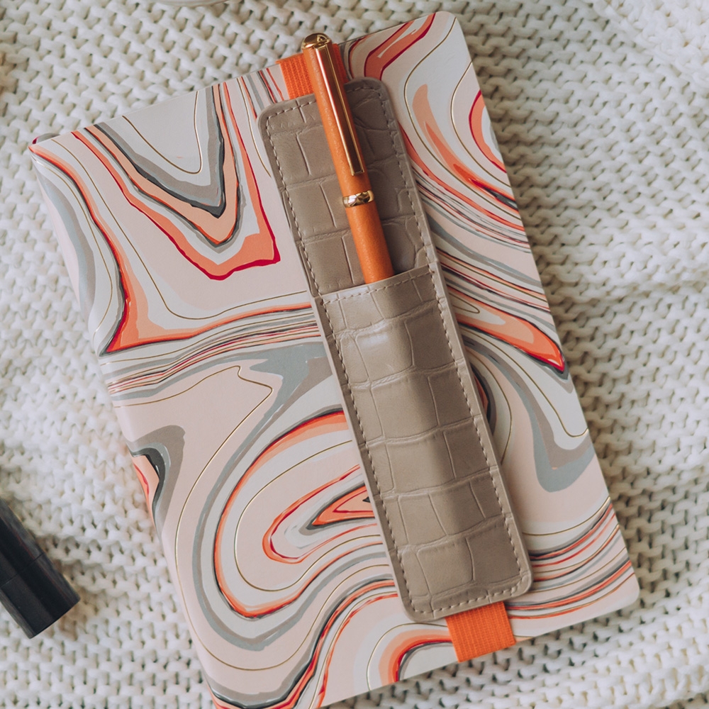 De pen holder van Artebene zorgen ervoor dat je favoriete pen altijd bij de hand is, of je nu snel een idee wilt opschrijven of een takenlijstje in je notitieboek wilt maken. Dankzij het elastische bandje kan de pennenhouder moeiteloos over elk notitieboek worden getrokken en fungeert hij ook als een praktisch sluitmiddel.
