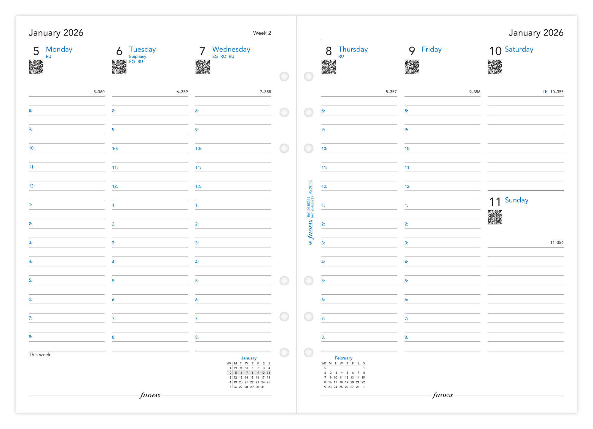 Week on two pages agenda 2026 voor in je Filofax A5 organizer.