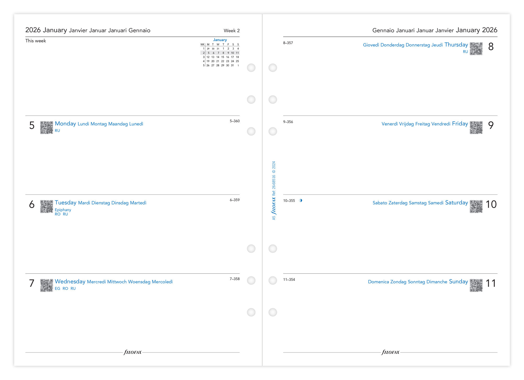 Filofax navulling organizer A5 – Week on two pages diary 2026