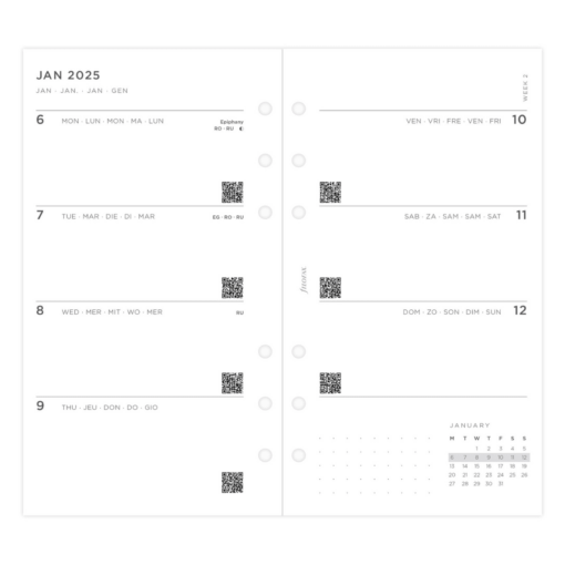 Filofax navulling Organizer Personal 7 dagen / 2 pagina’s 2025 (Minimal)