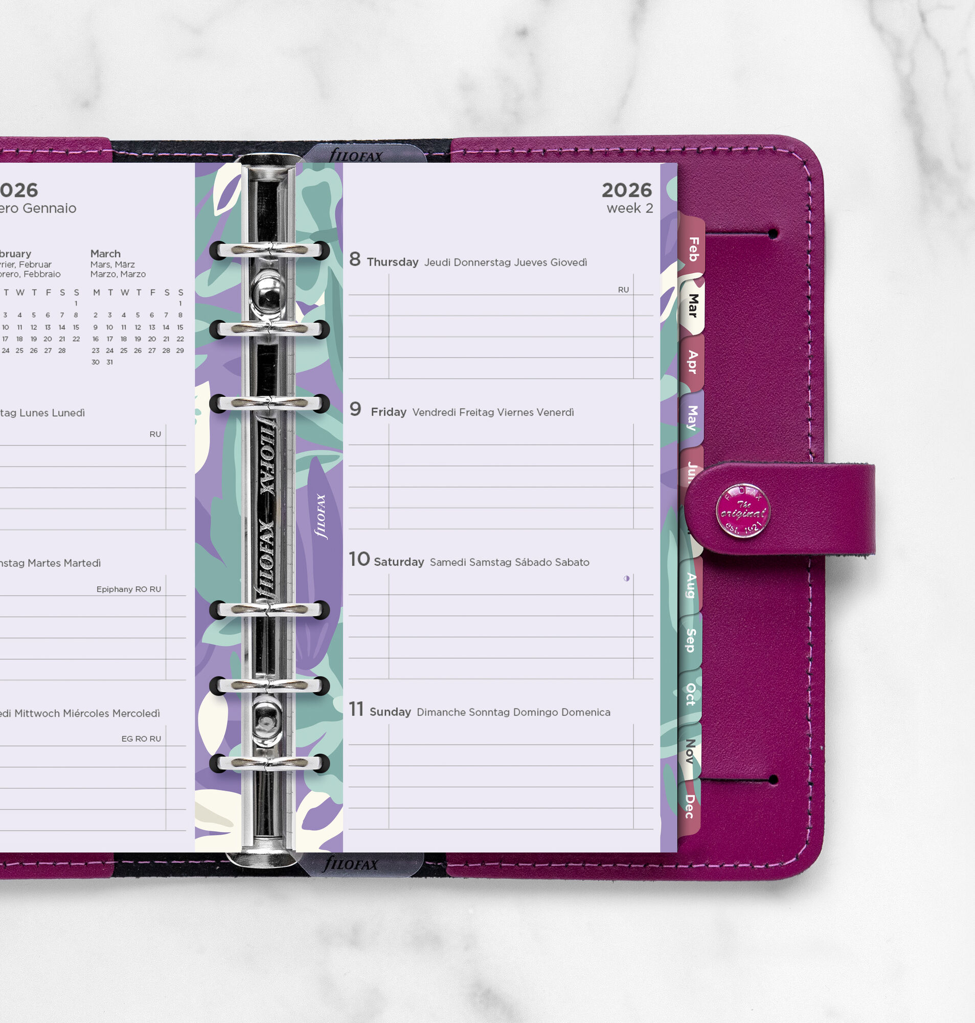 Agenda vulling voor 2026 met floral design voor in je Filofax organizer in personal formaat.