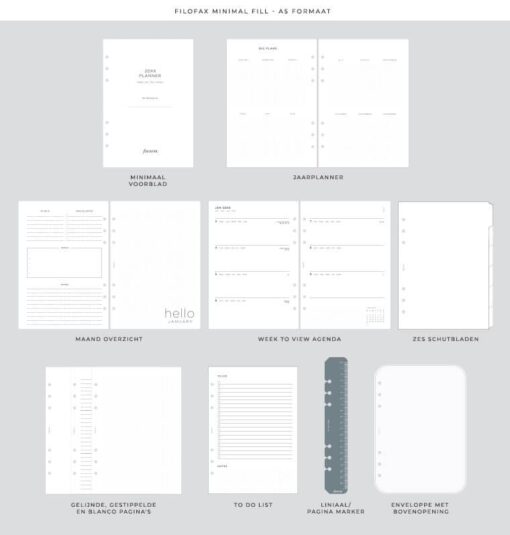 • Geleverd met 2026 agenda (1 week 2 blz), liniaal, wit en gekleurd papier, to-do papier, tabbladen en envelop