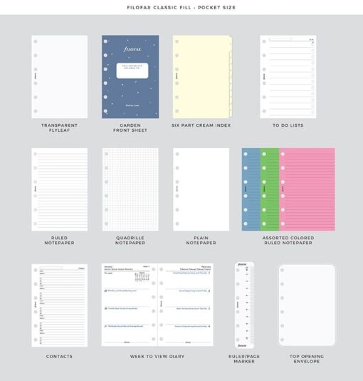 De Filofax organizer kun je dus aanvullen of hervullen met de navullingen die jij wilt. Je kunt de Filofax sluiten met de drukknop en er zit ook een liniaal in om als boekenlegger te gebruiken. Je ontvangt deze organizer met agendavulling, een liniaal/boekenlegger, to-do papier, blanco en gekleurd notitie papier, tabbladen en ruimte voor adressen. Voor en achterin de planner zitten vakjes waar je stickers en papiertjes kunt bewaren. Een planner waar je heel veel plezier van gaat hebben voor een langere periode omdat je deze gewoon steeds kunt aanvullen met nieuw papier of een nieuwe agenda vulling.