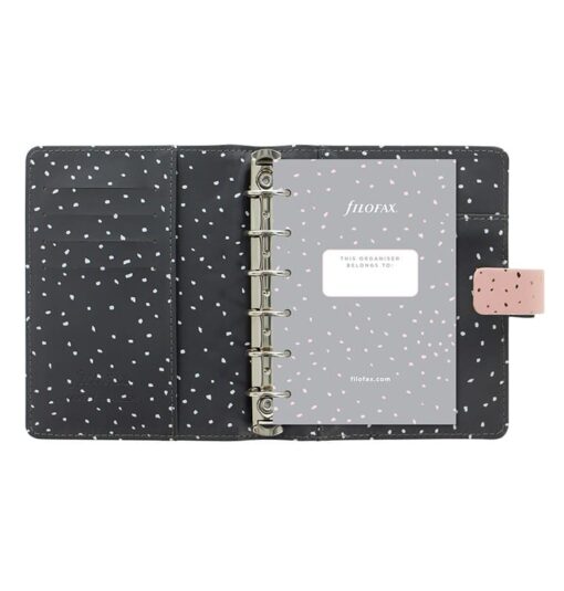 Breng wat bloeiende flair in je plannen met deze Filofax organizer Rose Quartz in Pocket formaat uit de Confetti Collection. Deze prachtige organizer heeft een gladde leder-look omslag in de kleur roze en zwart met goudfolie accenten. Het fijne aan deze organizer is dat je je notities en agenda bij elkaar hebt. Het pocket formaat neem je heel handig overal mee naartoe. De organizer kan dienen als bullet journal notitieboek waarbij je de bladzijden eenvoudig kunt verplaatsen. Of als een pagina ‘mislukt’ is, kun je deze eenvoudig er uithalen en opnieuw maken.