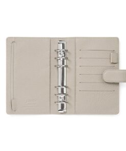 Deze prachtige Filofax Organizer Personal Norfolk Taupe heeft een zachte, volnerf leder-look omslag en is verkrijgbaar in 6 verschillende kleuren. Geïnspireerd op het prachtige landschap en de charmante stadjes van Norfolk. Het fijne aan deze organizer is dat je je notities en agenda bij elkaar hebt. Het personal formaat zit tussen pocket/A6 en een A5 formaat in. Handig om overal mee naar toe te nemen. De praktische organizer kan dienen als bullet journal notitieboek waarbij je de bladzijden eenvoudig kunt verplaatsen. Of als een pagina ‘mislukt’ is, kun je deze eenvoudig er uithalen en opnieuw maken.