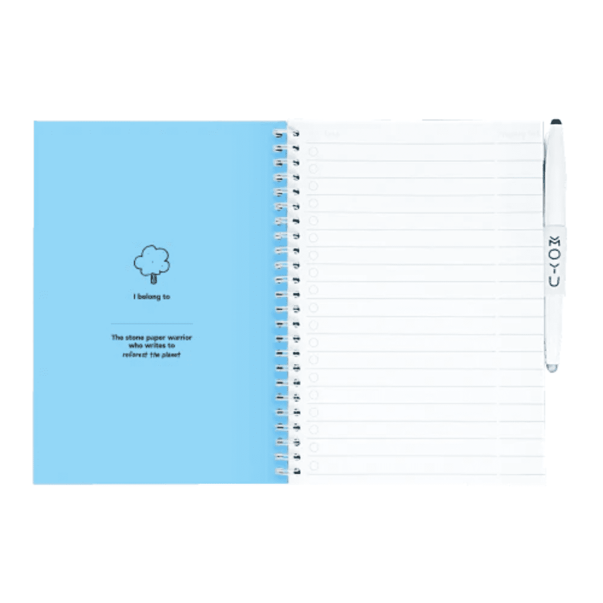 • Het notitieboek komt met penloop, Pilot Frixion pen zwart en doekje