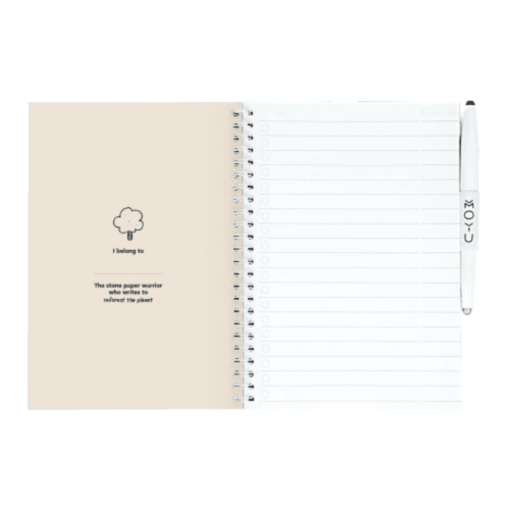 Bij het notitieboek krijg je ook een gratis penlus geleverd die je in je boekje kan plakken. Zo heb je altijd de juiste (Pilot frixion) pen bij de hand. Je kan er ook op schrijven met een gewone pen, maar dan is het notitieboekje voor eenmalig gebruik. Dit ringband notitieboek is verkrijgbaar in verschillende kaften en er is ook een ingebonden variant. De soepele kaft is gemaakt van 700 grams gerecycled karton.