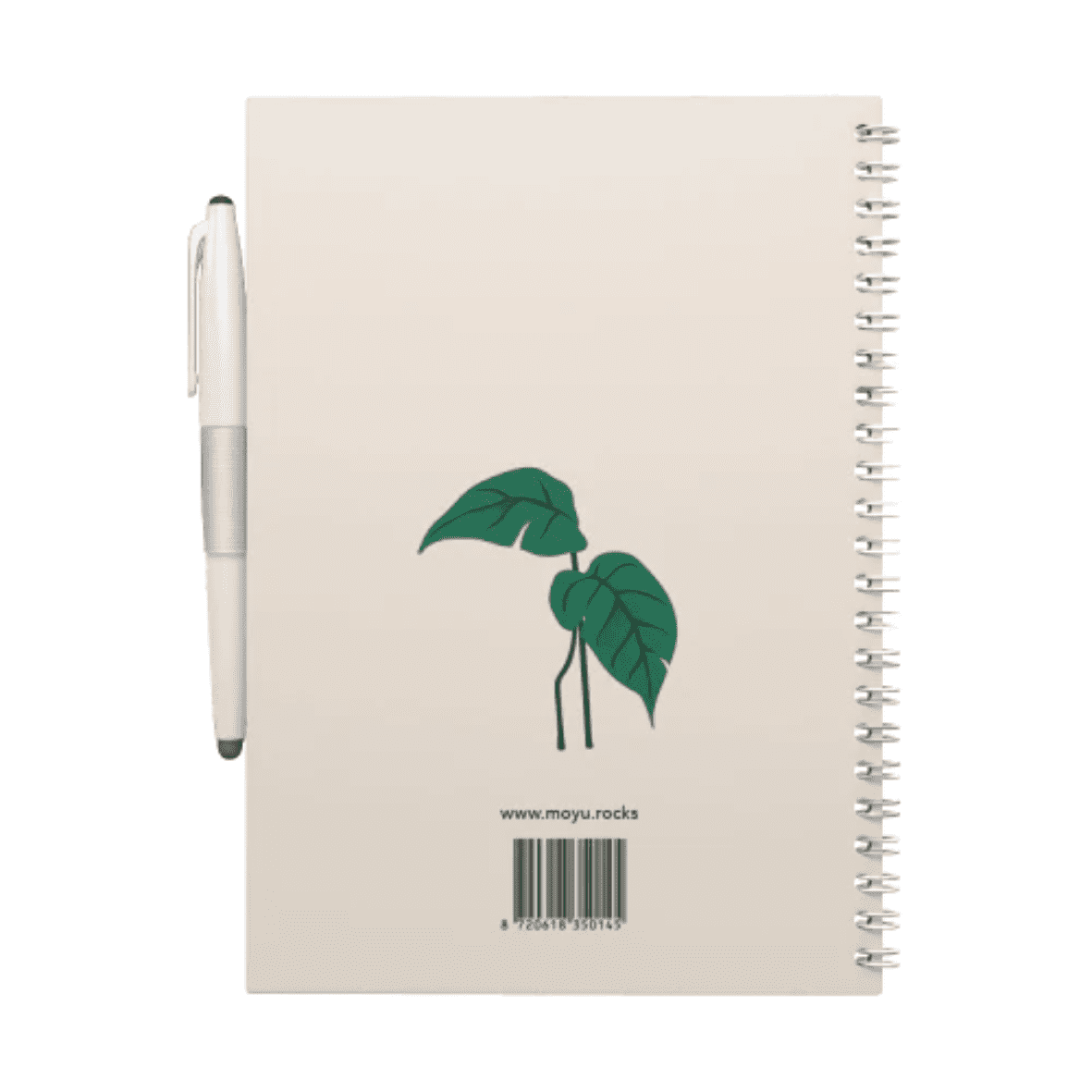 Waar moeten we beginnen met het uitleggen van dit notitieboekje. MOYU is verrassend, dat als eerste. We hebben meerdere duurzaam schrijven notitieboeken geprobeerd, maar dit is wel onze favoriet. Want naast dat we dol zijn op papier, het schrijven met een pen in een mooi notitieboek dat je koestert, vinden we het ook erg fijn dat kladjes, post its en losse briefjes verdwijnen. De oplossing voor jouw tijdelijke aantekeningen, krabbels en to-do lijstjes is deze MOYU ringband notitieboek A5 Sandy Jungle. We vinden het een must voor op je bureau om tijdens telefoon gesprekken aantekeningen te maken en acties die je niet mag vergeten op te schrijven.