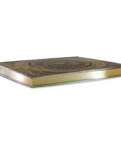 Het Peter pauper notitieboek Cosmology is een schitterend notitieboek van een ruime A5 formaat. Hij zit qua grootte een beetje tussen een A4 en A5 in. De kaft van dit prachtige notitieboek heeft prachtige goudkleurige decoraties. De patronen worden extra belicht doordat er met goudfolie gewerkt is. De binnenzijde is bekleed met een bruin/goud schutblad en de pagina’s hebben licht grijze lijntjes. De zijdes van de pagina’s zijn goud gekleurd. Ook heeft het notitieboek een zwart satijnen leeslintje.