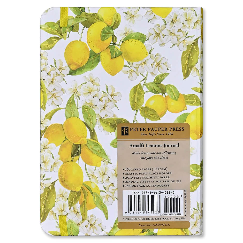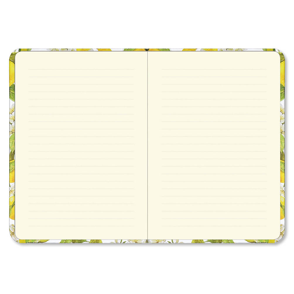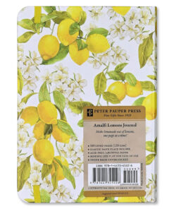Peter Pauper Press notitieboek Amalfi Lemons is een prachtig A6+ formaat notitieboek. De kaft is wit met een opdruk van zomerse citroenen. De opdruk heeft glimmende effecten en er is gebruik gemaakt van zilver folie voor extra details. Ook voel je op de kaft een relief van de afbeelding waardoor deze nog meer tot leven komt. Het Amalfi Lemons notitieboekje heeft 160 gelinieerde pagina’s van zuurvrij papier. Het papier is crèmekleurig.