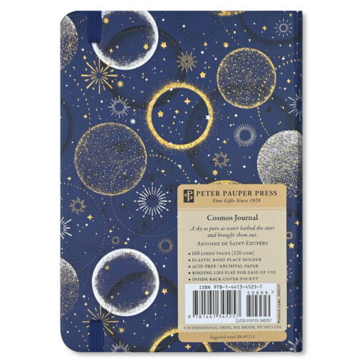 Peter Pauper Press notitieboek Cosmos is een prachtig A6+ formaat notitieboek. De kaft is wit met een opdruk van zomerse citroenen. De opdruk heeft glimmende effecten en er is gebruik gemaakt van goudfolie folie voor extra details. Ook voel je op de kaft een relief van de afbeelding waardoor deze nog meer tot leven komt. Het Cosmos notitieboekje heeft 160 gelinieerde pagina’s van zuurvrij papier. Het papier is crèmekleurig.