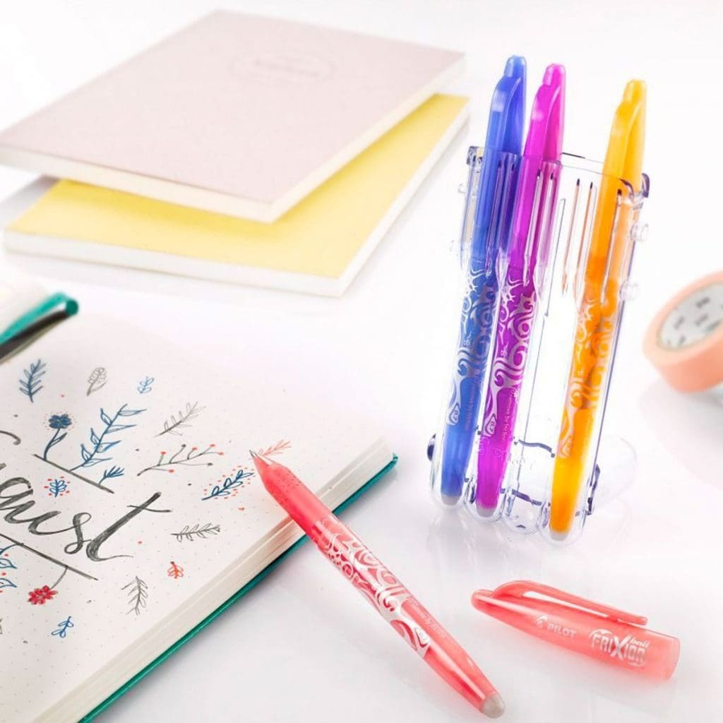 Bij My Lovely Notebook zijn wij dol op de Pilot Frixion pennen. Door de speciale thermische inkt van deze fijn schrijvende gelpen, kan je wat je hebt geschreven eenvoudig weer uitgummen met de achterkant van de pen (door de warmte die er ontstaat). Nooit meer gekras in je notitieboek want met deze pen, corrigeer je en kun je daarna meteen weer op dezelfde plek verder schrijven.