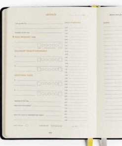 - Wekelijkse planning + reflectie: aan het begin van elke week helpt de productiviteitsplanner je je week te plannen voor succes. Aan het einde van elke dag en elke week zul je nadenken over hoe effectief je was, je helpen om je patronen te leren en te verbeteren voor morgen.