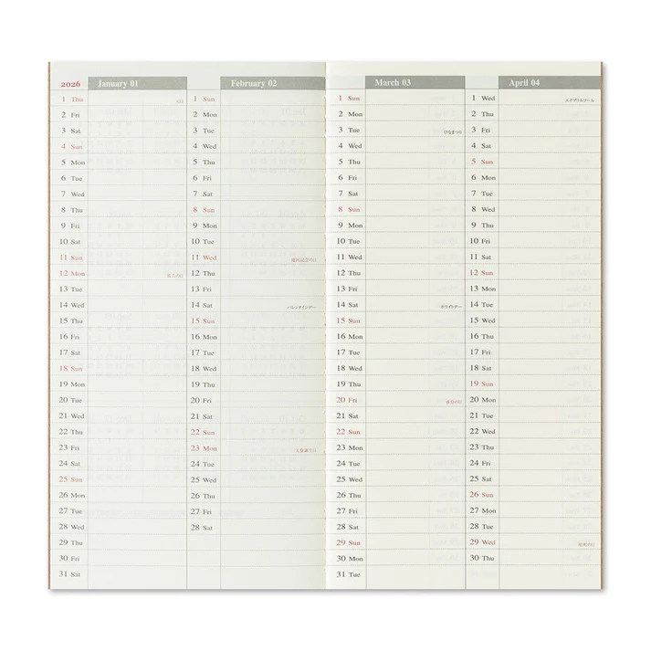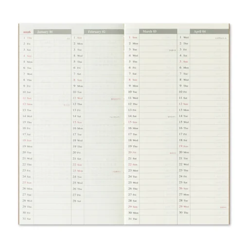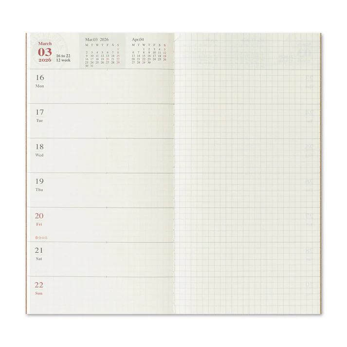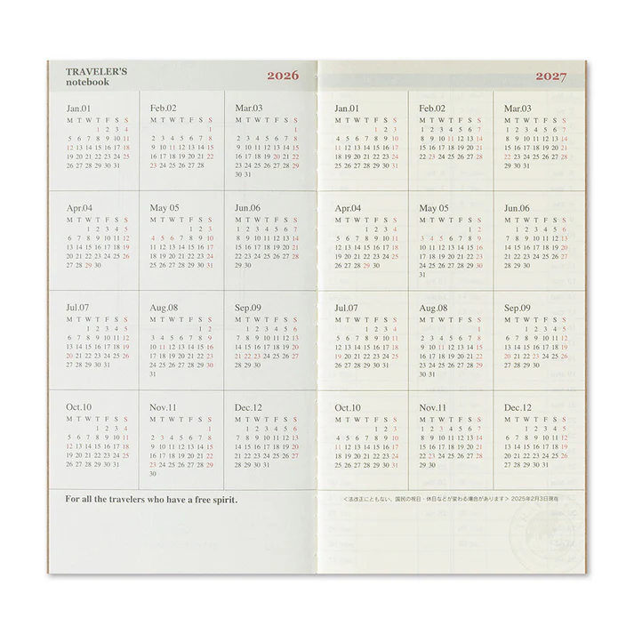 TRAVELER’S notebook navulling diary weekly + memo 2026