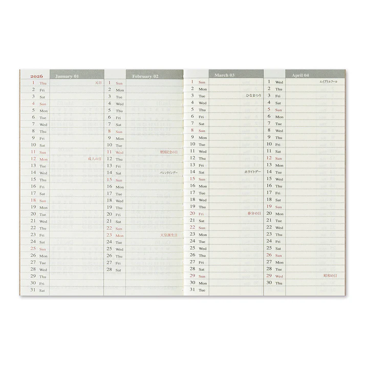 TRAVELER’S notebook diary weekly Vertical 2026 (passport size)
